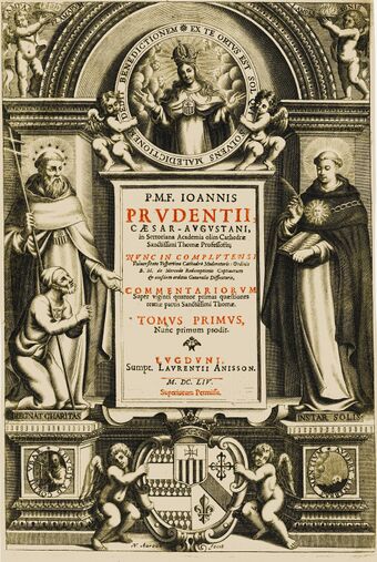 (Zaragoza, 1610 — Alcalá de Henares, Comunidad de Madrid, febrero de 1657). Religioso y teólogo.Portada a dos tintas. A la izquierda, san Pedro Nolasco con un cautivo; a la derecha, santo Tomás en ...